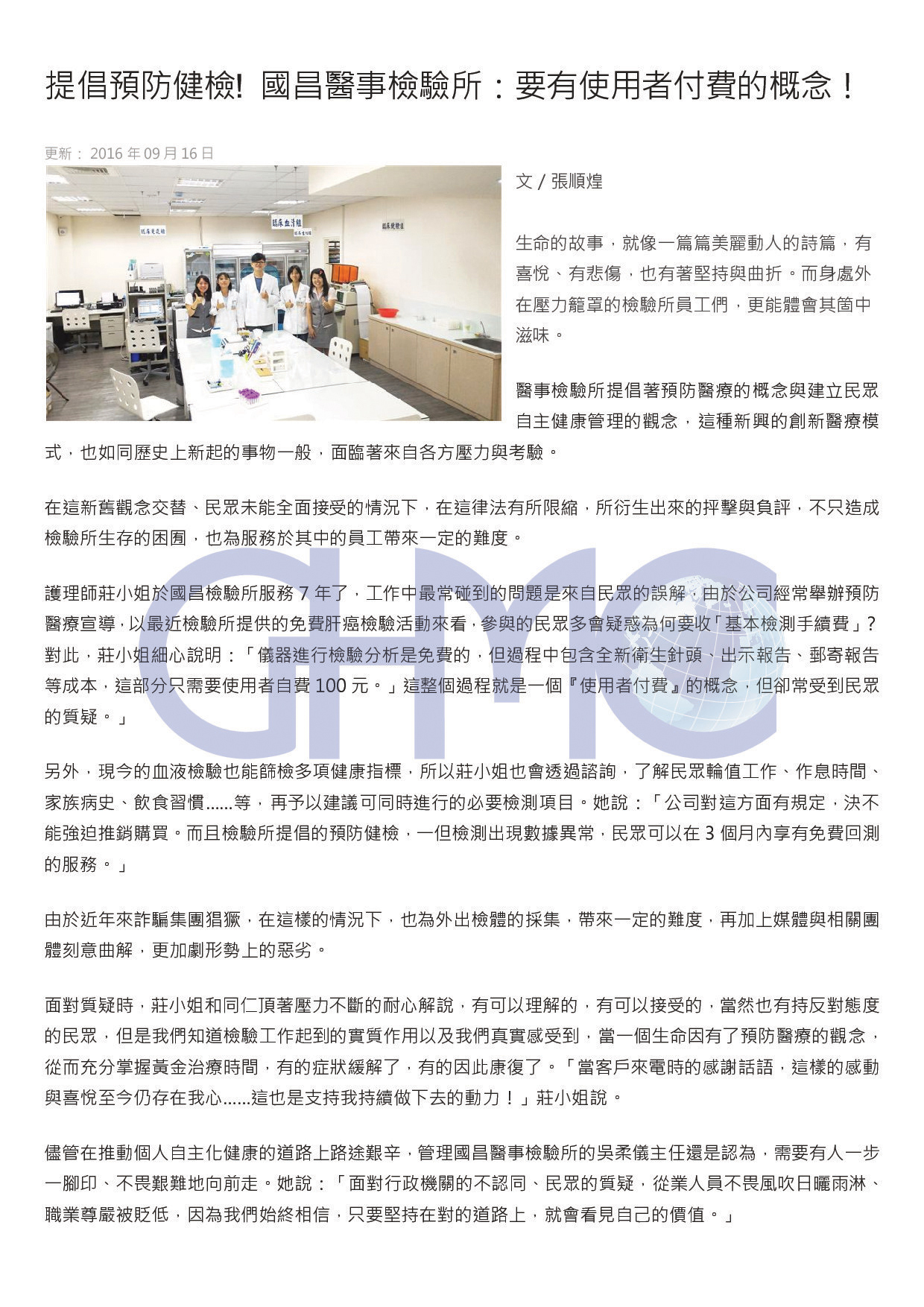 提倡預防健檢! 國昌醫事檢驗所:要有使用者付費的概念!