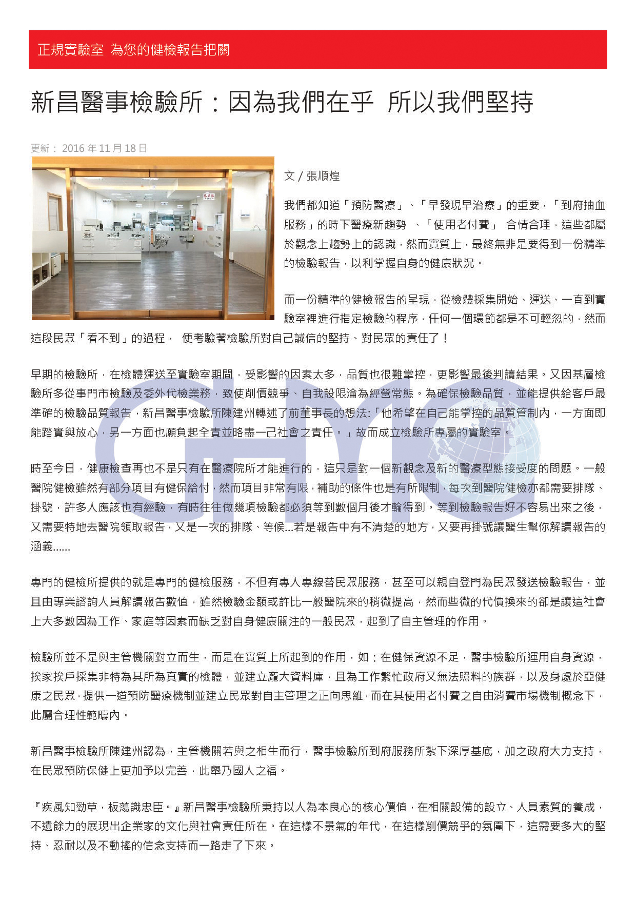 新昌醫事檢驗所: 因為我們在乎 所以我們堅持